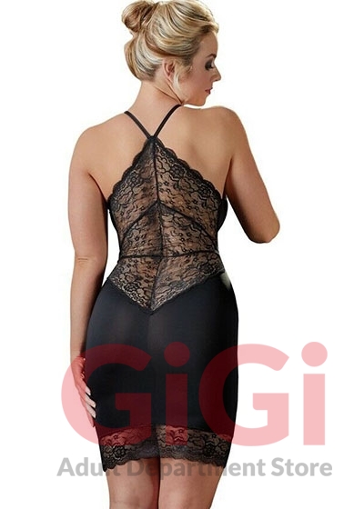 It is a high neck dress that is sexy and simple on the front. The slightly transparent dress looks very beautiful and not only because of the hem. It also has delicate floral lace, covering the entire back straight down to the buttocks. The black dress clings to your feminine curves, thanks to the stretchy material. You will surely feast your eyes in this breathtaking strapless dress