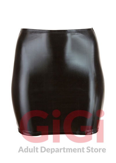Tight-fitting, black mini skirt made out of wetlook. With a seam that creates ruffles over the buttocks.
