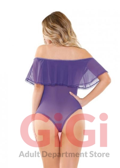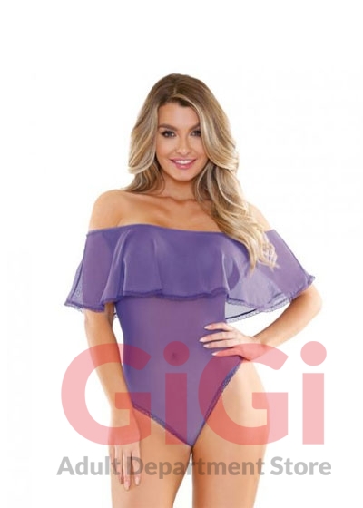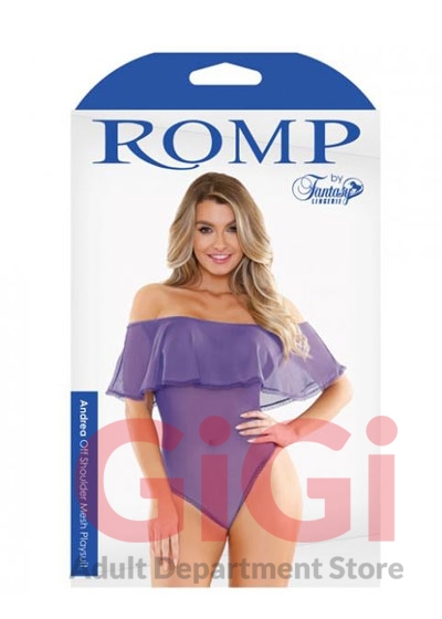 Bare those beautiful shoulders with our Andrea off shoulder mesh playsuit From Fantasy lingerie Romp collection. She features a relaxed ruffled neckline and a dainty lace trim detail. A convenient snap closure tops off this vibrant style. Fabric blend 90% Polyester, 10% Spandex.