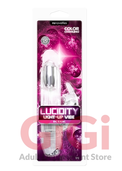 A classic bunny made extra user friendly, ultra powerful and always pleasurable, the Big Bang vibe from a glowing light-show enhanced Lucidity collection targets sweet spots inside and out while flickering through all hues of the rainbow.