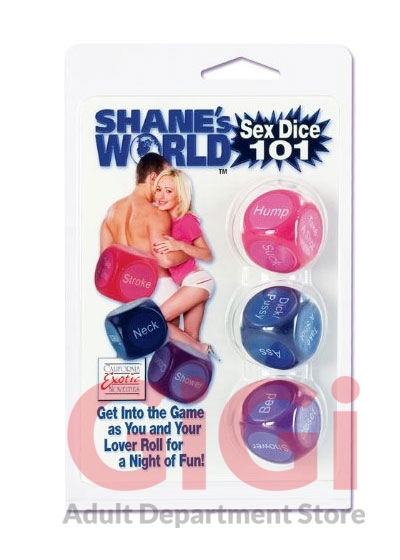 ShaneS World Is The Leader In Reality Adult Entertainment. With Years Of Experience Producing College Reality Porn, This Irreverent Company Has Created A Stir Wherever They Show Up With Camera Is Rolling! All Of Their Toys Have Been Endorsed By The Ladies Of ShaneS World! ShaneS World Sex Dice 101 Game Take A Class Together! Roll The 3 Dice For A Night Of Sexy Fun. Category: More Fun, Gag Gifts and Party Favors. ShaneS World Sex Dice 101 Game Is A Registered Trademark For California Exotic Novelties.