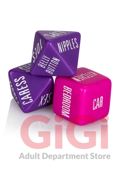 The game comprises of 3 colored dice. The 2 octagonal dice feature playful and arousing functions for you and your lover to perform on each other. The classic square die indicates the perfect location for your steamy spontaneous pleasure. Take turns rolling the dice, and following the instructions for at least two minutes. Enjoy tickling toes or caress privates until your time is up. Once your lover throws the dice, you can relax and enjoy your turn at receiving the heightened sensuous pleasure.