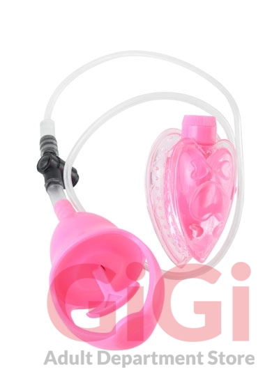 Get just the right amount of stimulation where you want it most with the Vibrating Mini Pussy Pump. Simply place the soft heart-shaped suction cup over your lips, then activate the high-intensity super suction by pulling on the easy-grip trigger. The powerful suction action holds the cup in place, creating an air-tight vacuum against your body. The tiny ticklers tease and please directly over your clit, while the contoured design conforms to your body's curves and stays in place without using your hands. Turn the dial on the powerful micro bullet and enjoy incredible vibrations and direct clitoral stimulation. To relieve the pressure, press the quick-release valve on the pump handle and you're ready for fun. Cleanup is a snap after the fun with Pipedream toy cleaner and warm water.
