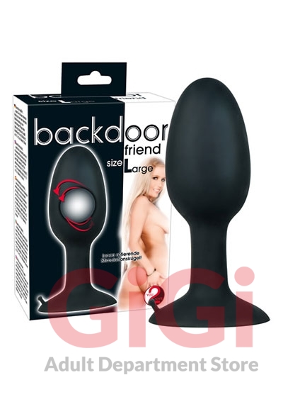 Black butt plug with inner rotating stimulation bullet, rounded tip and strong suction cup. Total length 12 cm, penetration depth 10.5 cm. ø 1.7 to 4.2 cm. Material: silicone, free of phthalates according to EU Regulation REACH.