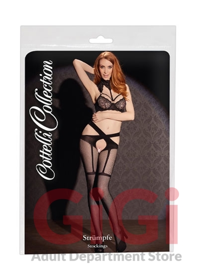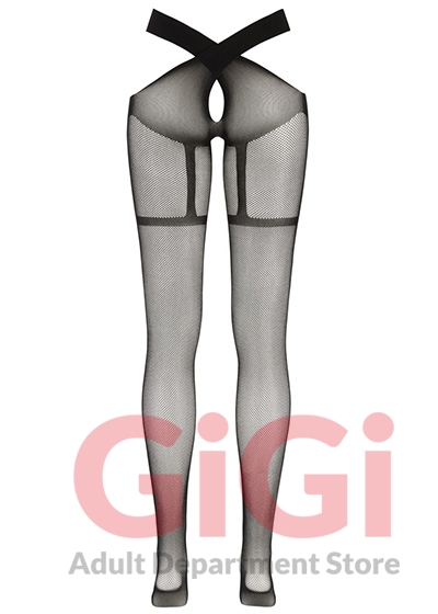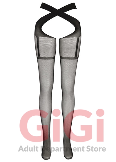 Net stockings with suspender straps and garters woven into them. The suspender belt is worn around the waist in a criss-cross style and this makes it an exciting eye-catcher.