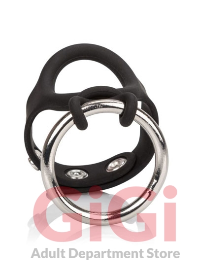 A perfect fit is all yours with this stretchy and comfortable delight. As simple to dissemble as it is easy to use, you'll find cleaning a snap. This shaft and support system help with hardness and more pleasure. Made with heavy duty hardware and designed for to fit how to want it. Place the steel ring around the base of your balls & cock, squeeze your balls through the silicone circle, and snap the silicone straps around the base of your cock for a whole new level of cock ring play.