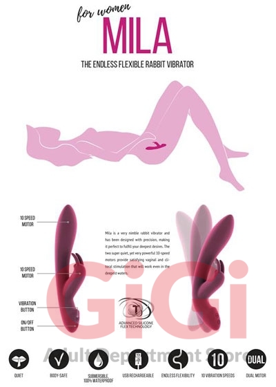 Mila is a very nimble rabbit vibrator and has been designed with precision, making it perfect to fulfill your deepest desires. We have used a new technology to develop this medical grade silicone toy, which gives Mila softness and endless flexibility to adjust perfectly to the shape of your body. The two super quiet, yet very powerful 10-speed motors provide satisfying vaginal and clitoral stimulation that will work even in the deepest waters. You can also operate the controls with one hand! When you and your partner are done, simply connect it to the included USB Charger. One touch will be enough to fall in love with the warmth this toy radiates. Allow Jìl into your life and let it overwhelm you with affection!