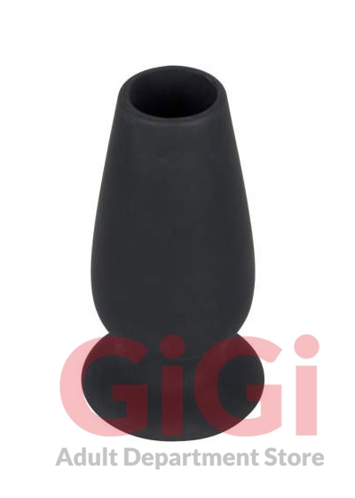Liquid can be poured into the hollow black butt plug, With a base. Complete length approx. 13 cm. Outer Ø 3.2 to 5.9 cm, inner Ø 3 cm. Material: silicone, phthalate-free according to EU Regulation REACH.