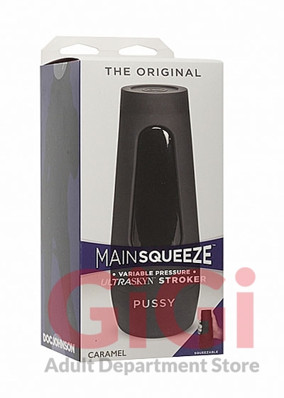 Main Squeeze The Original Pussy Caramel Tan Stroker. She is always within reach. Doc Johnsons Main Squeeze line of hard case masturbators is designed to put the power in your hands, featuring a squeezable grip that lets you vary the tightness of each stroke and a suction adjusting end cap. Featuring a perfect lifelike pussy opening, this Ultraskin stroker looks and feels real and is whoever you want her to be. Each Ultraskin sleeve features a different textured interior, making every experience as unique as the real thing. The double cap hard shell design doubles as a discreet travel and storage case, keeping your Main Squeeze fresh and ready for whenever the mood strikes. Fully disassembles for cleaning. Instructions included. Specifications: total length 7.5 inches, width, diameter 3 inches, circumference 9.5 inches. Bulk weight 1.40 pounds.