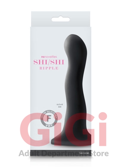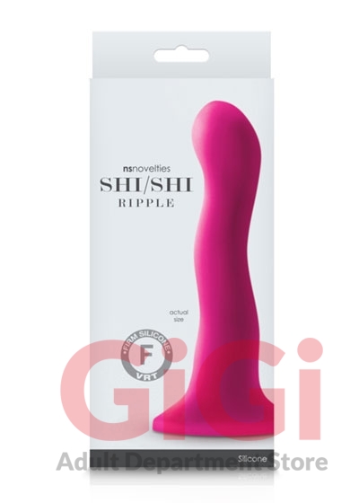Shi/Shi Ripple 6 inches Dildo Pink. Glide away with ripples of pleasure with Shi/Shi Ripple a 6 inches harness compatible dildo made of supple, soft, yet firm for penetration silicone. Featuring a suction cup bottom this dual purpose toy is designed to deliver in all positions. Let Ripple carry you to the shores of pleasure. Body safe silicone is compatible with all lubricants. UPC657447099205. Product dimensions 7.5 inches by 3 inches. Package dimensions 9.2 inches by 3.9 inches by 3.3 inches. Packaged weight 16.20 ounces. Product material Silicone.