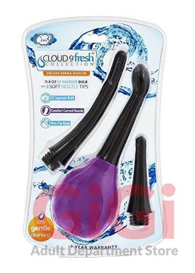 Cloud 9 Fresh Plus Flex-Tip Anal Douche Kit - The Anal Douche and Enema System makes preparing for anal or vaginal intercourse quick and simple. This soft, easy to use enema bulb is a handy device to clean the rectum or vagina. Ideal for anal and vaginal douche cleansing prior to play. This Cloud 9 cleansing bulb includes a premium soft flexible tip that contours to your body. How to use: The Cloud 9 Fresh Plus high quality kit is completely safe and brings great results in the comfort of your own home. Our enema is composed of two parts: The first is a flexible, 4", 5.75" or 7" nozzle that's easy to insert and comfortable to remove. The second is a 11.8 oz. flat-bottomed bulb that was specially designed to resist tipping over. Simply fill the bulb with your desired fluid, insert the tip, and slowly press the bulb to release the liquid. When you're finished, the parts detach for a quick cleanup in warm, soapy water.
