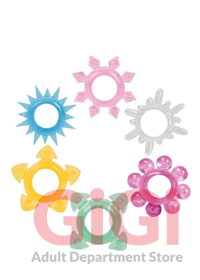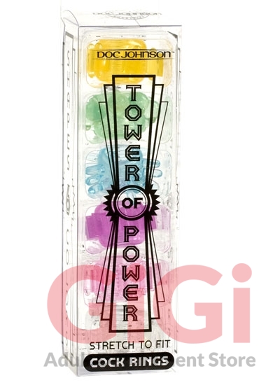 Give yourself the tower of power cock rings set and excitement is sure to follow. Colors and shapes are yours for the choosing with this delectable selection of candy-colored cock rings. Made of super stretchable TPE, these cock rings will add excitement to your play time. Make the fun last longer, with Doc Johnsons Tower of Power.
