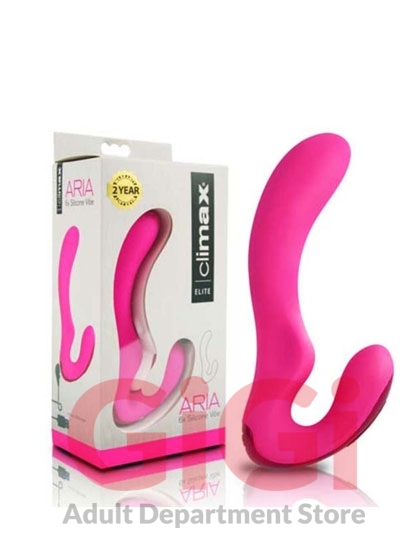 Stylish rechargeable silicone massager that was designed for pleasure. Curved for your angled delight, Aria is firm yet flexible for comfort and function. Petite by design, travel-friendly Aria is perfect for intimate adventures anywhere. Effortless 3-button control panel features six robust functions and twelve levels of intense vibration. Simply press the center button for three seconds to turn Aria on or off. Press again to change the function. Press the top and bottom arrows to control the intensity of any function. Aria is made from silky smooth body-safe ABS plastic and medical grade silicone. Includes a universal USB chargers for convenient charging anywhere. Splash proof for fun in the shower and effortless cleaning. Aria is 6 inches (15.24 cm) long and has a girth of 1.2 inches (3.1 cm). Pink. From Topco.