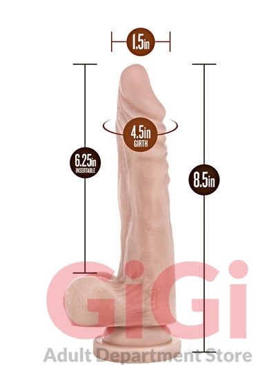 Get back to basics! Blush Novelties Stud Muffin is a 8.5 inch realistic dildo with a sturdy suction cup base that holds to any flat surface for solo time. Or partner up for strap-on harness fun! Stud Muffin is pleasantly scented and made of soft, phthalate free PVC. To clean use soap and water or a toy cleaner then let air dry.