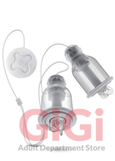Discover a whole new world of pleasure. Blush's latest creation, Titillator is a nipple stimulating device like no other. What does it do? The soft textured ticklers inside of the cups are positioned directly over and around your nipples. The ticklers rotate at different speeds with different patterns massaging and caressing you. To use. Place cups over your breasts. Twist the top of the cups to generate a suction so cup can stay securely fastened. Use the controller to control the speed and patterns of massage. 3 unique soft textured nipple stimulating attachments are included. Attachments can be conveniently attached or detached via a built in magnet. From Blush Novelties Materials: TPE, ABS Color: Clear Product is rechargeable, requiring no batteries. USB charging cable is included.