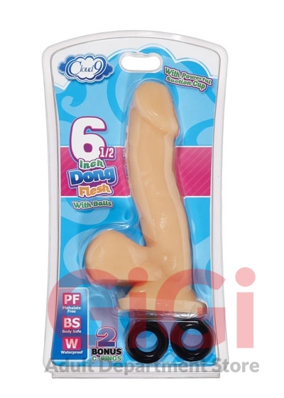 Cloud 9 Novelties 6.5 inches Brown Dildo with Cock Rings. The Cloud 6.5 inches dildo has a unique curve that makes him great for g-spot or p-spot stimulation. Phthalate free and latex free he is fun and safe. His suction cup makes him easy to use in any scenario and he is harness compatible. Cloud 9 5 inches Dildo Brown plus as a bonus two free cock rings. 6.5 inch delightful mini dong. Personal 6.5 inch realistic dong with 2 bonus cock rings. Sized and shaped perfectly, this realistic dong can bring you to orgasm! Perfect for anal and vaginal play! Made of phthalate free latex free PVC. Harness compatible. The flat base ensures stability and the suction cup presses up against most flat surfaces for hands free pleasure. Features realistic dong is made using body safe phthalate free materials PVC and the cock rings are made using Thermoplastic Rubber TPR. This odor free dong is compatible with all lubricants, easy to clean and fun to use. Dildo features veins throughout the shaft for added sensations. Perfect beginners size. Realistic shape and high quality design. Bonus two super stretch cock rings. Strap on compatible. Clean and care thoroughly clean the Cloud 9 dong before and after use with an antibacterial soap or use Cloud 9 Cleaner. Features: skin safe, phthalate free, latex free, powerful suction cup, strap on harness compatible, realistic detail, curving shaft. Weight 11.68 ounces. width 1.50 inches, length 6.50 inches, insertion length 5.75 inches.