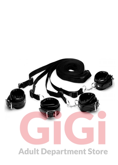 Strap your partner down to the bed and turn them into your personal submissive pet! Instantly transform your bed into a piece of bondage furniture, perfect for opening your lover up, spread eagle! They will be writhing in ecstasy as you please, tease, and torment their helpless body. The sturdy cuffs are lined with comfortable padding so that you play things wrists and ankles will not grow sore as play sessions last long into the evening. The buckle allows for a wide range of adjustment to fit most sizes, and also locks so that your lover will feel even more deliciously trapped and confined. Just slide the restraint set under your mattress and pull the cuffs and straps up at the corners. Adjust the straps as needed to fit all bed sizes. Spice up your sex life and you will never want to get out of bed!