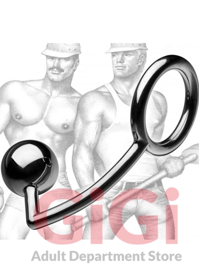 This cock and ass hitch features steel construction, for the ultimate in dual stimulation. The insertable ball provides direct P-spot stimulation with every thrust, while the cock and ball ring helps provide a bigger, thicker, longer lasting erection. Made of stainless steel with a subtle gun metal finish, it comes with a Tom of Finland dog tag and a free collector print! Size Total Length: 5.75 Insertable Length: 2.25 Ring Diameter: 2 Anal ball Diameter: 1.25 Supporting Arm Length: 2.88
