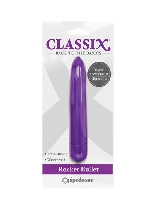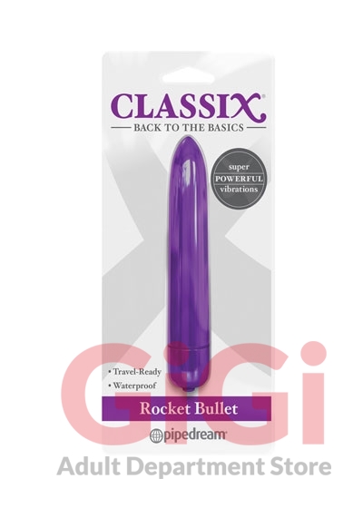 Indulge yourself with the simple pleasures of a classic! Versatile, simple and powerful, this Classix Vibrating Rocket Bullet is everyone’s essential sex toy! A press of the button activates intense vibration, while the smooth tip allows for easy pinpoint pleasure. The discreet size is perfect for travel and fun on-the-go. Try it in the spa or shower and turn bath time into bliss time! For optimum performance, remove batteries during storage.