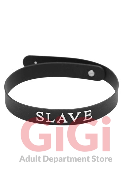 Master Series Silicone Collar Slave Black O/S. Claim Your Submissive With This High Quality Silicone Collar From The Master Series. This Comfortably Slender Silicone Collar Is Adjustable, To Ensure A Snug Fit. The Collar Makes The Ultimate Statement, With The Word Slave Simply Stated On The Front In Raised White Silicone Letters. Adjustable Notch Closure In The Back. Ideal For A Night Out, Or A Naughty Bdsm Session. Measurements 17.5 Inches In Total Length, 0.75 Inch Wide. Materials Silicone, Metal. Color Black.