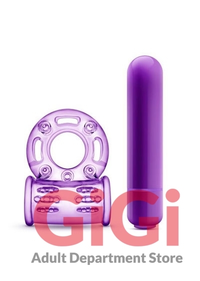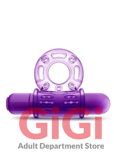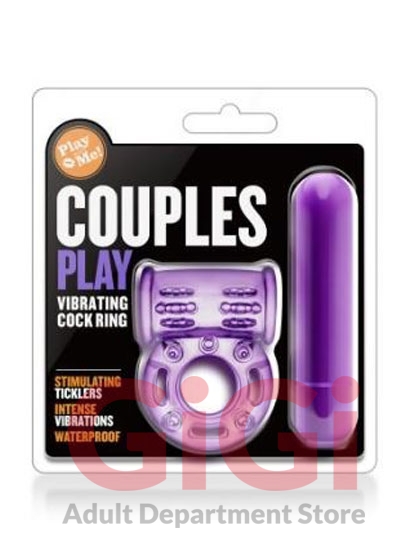 Play With Me The Player Vibrating Cock Ring Purple. 3 in one toy. Discover intense pleasure during lovemaking The Player Vibrating Cock Ring. Powered by one AAA battery. Your ring emits thumping vibrations that will please both partners simultaneously. Stretch the smaller ring around the base of the penis and the larger ring behind the scrotum. Push the button to start the vibrations. Use the ring and bullet together, use just the bullet, or use just the ring. The perfect couples toy and the perfect solo toy as well.