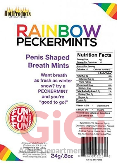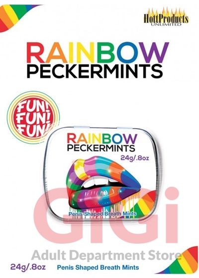 Want breath as fresh as winter snow? Try a PECKERMINT and you’re "good to go!” Rainbow Colored Penis Shaped Breath mints.