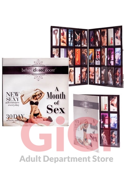 Contents: This calendar contains 30 days of exciting sexual activities and romantic adventures. It's up to you and your lover to unlock the doors and then perform the activities as listed on the cards.
