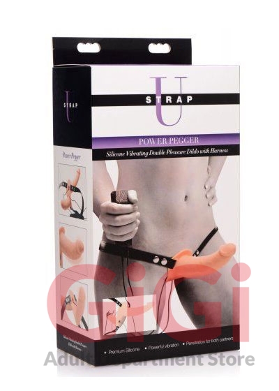 Power Pegger Silicone Vibrating Double Dildo With Harness