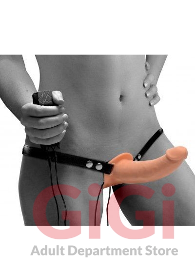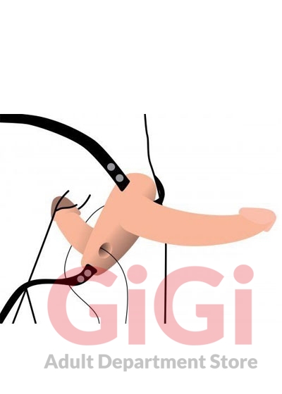 Peg your partner while you also experience the pleasure of penetration! This vibrating double dong is already harnessed into sturdy leather-like straps that are easily adjusted to your perfect fit via 2 buckles. Both dildos are realistically textured for the dual appreciation of both you and your partner. Vibrating bullets are embedded in each shaft, easily controlled by their wired controller. Cycle through 10 powerful speeds and patterns of vibration with the push of a button. This is a great accessory for female-female sex or bend-over boyfriend play. Made of premium silicone, the double-ended dildo is not compatible with silicone lubricants. Clean after use with mild soap and warm water.