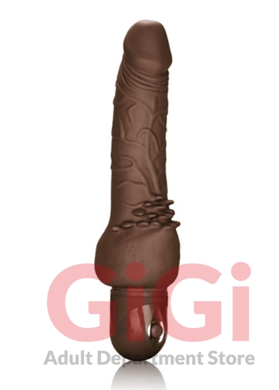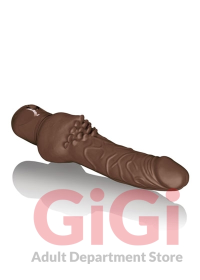 Waterproof Power Stud Clitterrific Brown. Soft, flexible, power packed vibrator. 3 speed push button control. Safe and pure for body and pleasure made using phthalate free materials PVC shaft vibrator, ABS plastic and ABS plastic with polyurethane PU Cote cap, ABS plastic with silver plating decor. 7.5 inches by 2.5 inches. Vibrator requires 2 AA batteries, not included.