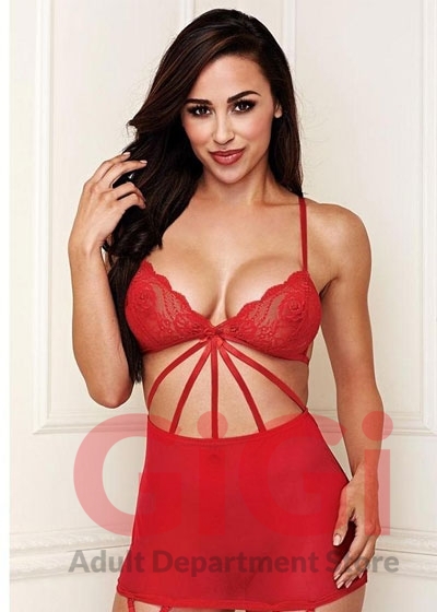 Criss Cross Lace Mini Skirt Set With Garter Red