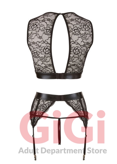 - 3-piece set top, suspender belt, crotchless string