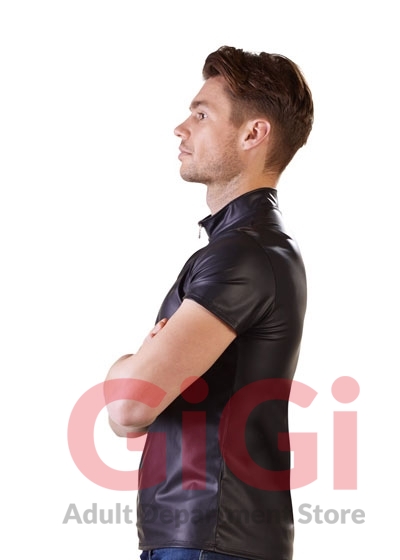 This black shirt with short sleeves and a small stand-up collar is quite simple and classic, but it's still way more exciting than a normal shirt. Why's that? The matte look emphasises your muscles in a subtle way so that your partner will find it really hard to resist unzipping the full-length front zip as quick as a flash so that they can finally see what's underneath…
