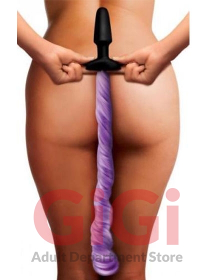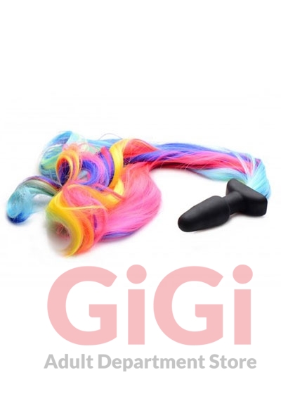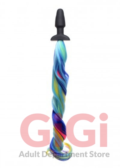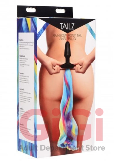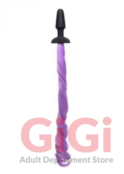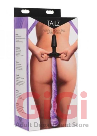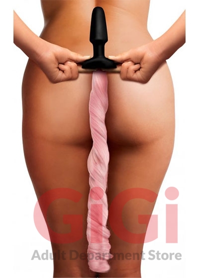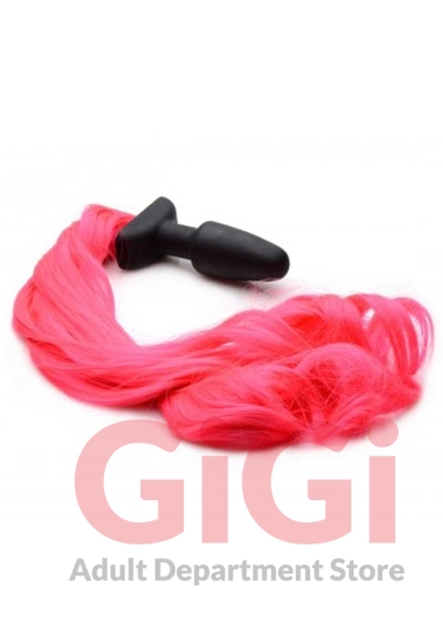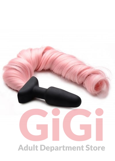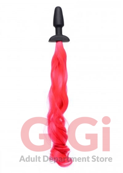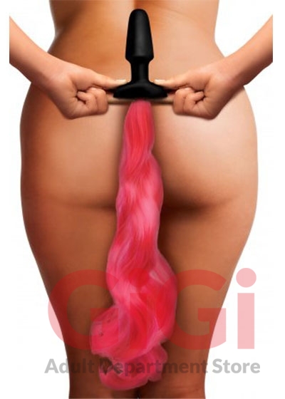 Tailz Pony Tail Anal Plug from XR Brands. Enjoy hot equine action in a fun, flirty color with this smooth, full pony tail! Braid it, brush it, swish it, show it off! The tail is a full 20 inches of synthetic fiber, topped with a phthalate free and silky smooth silicone plug. The classic spade shape inserts easily, with a flared base to keep it firmly in place.