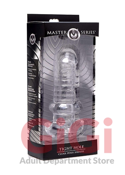 Master Series Tight Hole Clear Ribbed Penis Sheath