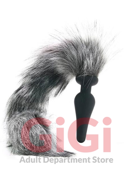 Now, the plug itself is pretty great on its own, classically shaped and mid-sized for a nice distinct stretch. The best part though, is definitely an extra long, ultra fluffy grey wolf tail that flows down from the base. It's made of faux fur, not to worry, but we definitely had to double check, because it feels very real. High quality faux sure!