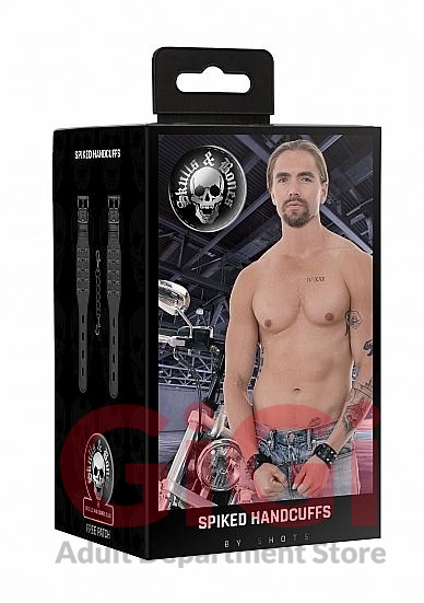 Ouch! Skulls and Bones Handcuffs With Spikes Black
