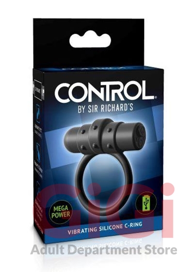 Sir Richard's Vibrating C Ring Control Silicone Black. Control has serious benefits. Crafted with the power to influence, Control offers measured restriction for harder, stronger, longer erections and more intense orgasms. Creating the worlds most comfortable cock ring demanded the best material available extremely stretchy silicone with a non-pinching surface, providing even pressure where it counts for greater results. Powered with a convenient rechargeable motor, experience digital vibration modes in 5 power levels and 5 functions to intensify every orgasm. Spherical pleasure nodes create vibration waves to elevate partner play. Position the powerful motor at the base of the penis to provide intense vibration felt throughout the entire shaft. Transform Your Sensations: can be worn with or without the vibrating bullet to explore pleasure options.