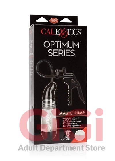 LARGE & IN CHARGE: CalExotics Optimum Series Magic Pump is everything you need to super size and super stimulate your pleasure piece. The sleek, durable automatic pump provides superior suction and powerful pleasure with the push of a button