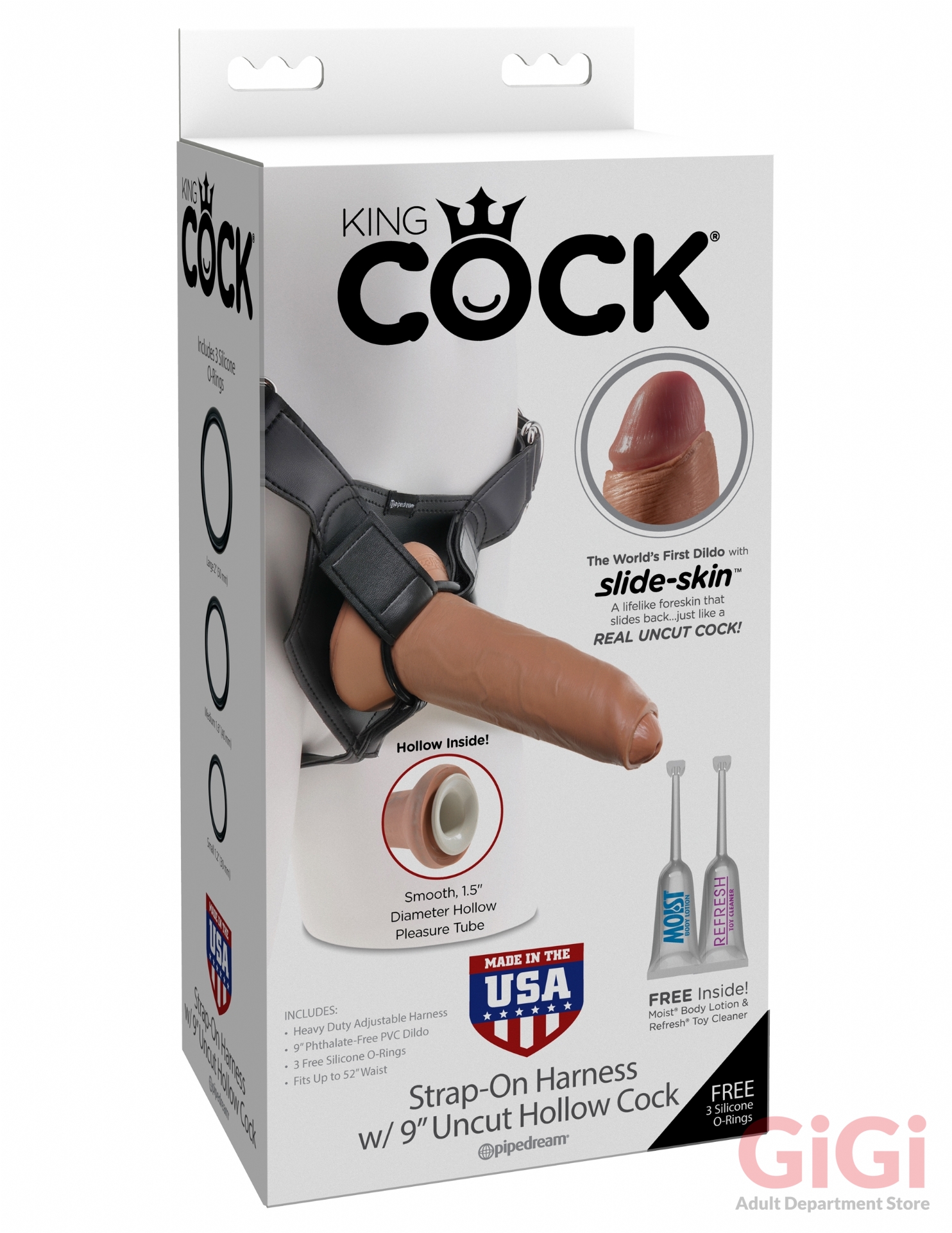 King Cock Strap-On Harness W/ 9 inch Uncut Hollow Cock