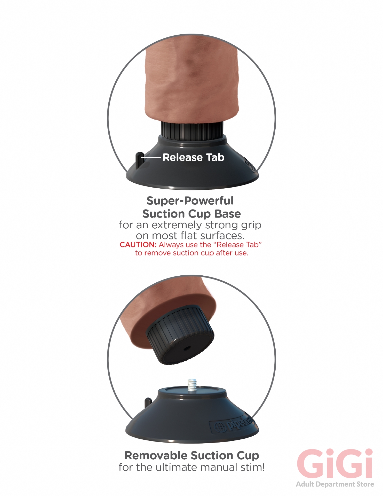 The super-strong suction cup base sticks to nearly any smooth, flat surface and offers harness compatibility for strap-on fun. Stick it to the floor, wall, tile, or bedpost and it will stay securely in place. Always use the release tab to remove the suction cup after use. The suction cup can be removed from the vibe by simply unscrewing it from the base for easier handling during manual play.