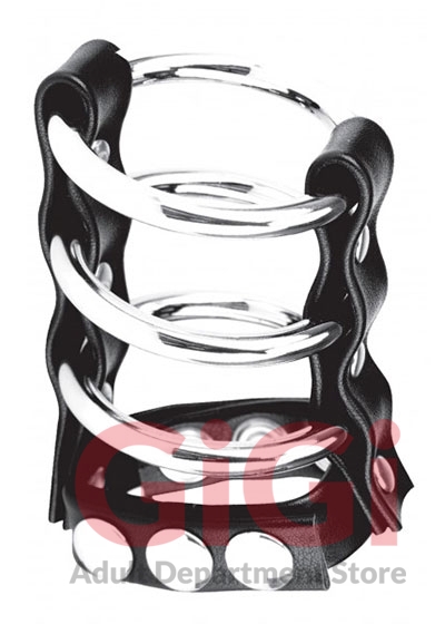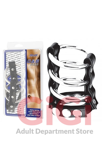 Triple Metal Cock Ring With Adjustable Snap Ball Strap