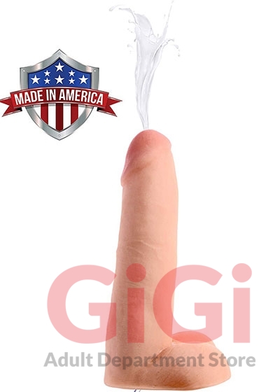 This 8 inch shaft is ready to spill its jizz for you. Get ready for Loadz of squirting fun! This ultra lifelike dildo features a dual-density material that looks and feels just like the real thing. Enjoy every vein, wrinkle, and ridge of this ejaculating dong as you enjoy penetration on your own or with a partner. To use, just fill the syringe with Cum Load Unscented Water-based Lube or another fluid, insert the tip of the syringe into the hose, and when you are ready for a wet rush, push in the plunger! This material is compatible with both silicone and water-based lubes and can be cleaned with mild soap and warm water after use.