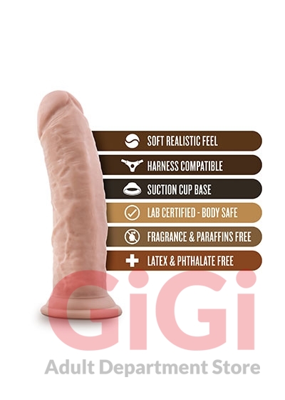 The doctor is in! The Dr. Skin 8 inch Realistic Cock is a realistic dildo with a sturdy suction cup base that holds to any flat surface for solo time. Or partner up for strap-on harness fun! This Dr. Skin Realistic Cock is made of safe and soft PVC. It contains no phthalates, parrafins, nor latex. To clean use soap and water or a toy cleaner then let air dry.