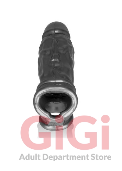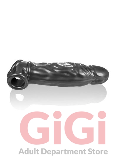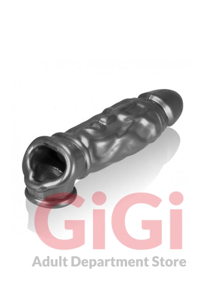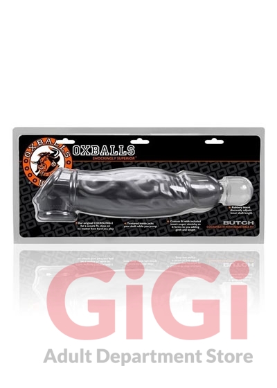 Butch Cocksheath by Oxballs Steel Silver. At Oxballs, few things get us as hot as a hefty trucker cock and butch blue collar boys always seem to have the best bulges. Now, you can transform your hog into a seriously veiny slab of beefy cock. Butch is a blubbery cocksheath with a built in Cocksling 2 attached at the base. It is made from signature Super Flex TPR so it is super soft and squishy but firm enough to enhance the natural girth and length of your stick. The sling keeps this firmly melded to your meat making it into one heavy duty hole gaper. No need to worry about it slipping or sliding off as you pump and pound some pucker. Each Butch cocksheath comes with a fitted bullet insert designed to help you customize the fit and feel. The blubbery insert is designed to lock into the inner chamber, letting you adjust the tightness of the inner length on your shaft. Coat the inside with lube, pop your meat in, and you are ready. If you want a really tight grip on your meat, it is recommended burping out any excess air by tightly squeezing the length of Butch down to the base. Original design copyright Oxballs. Super Flex TPR safe, strong, non-toxic and phthalate free. Lube safe: water based or silicone. Care wash after use in warm soapy water, air dry. Store toys separately. It is recommended breathable cloth pouches or cotton socks. Stats approximate length 8.5 inches, width 2 inches. Main hole circumference 4.25 inches. Shaft hole circumference 3.5 inches. Inner shaft length 4.75 inches. Ball hole circumference 3.5 inches. Smallest usable shaft circumference 5 inches. Largest usable shaft circumference 6 inches.