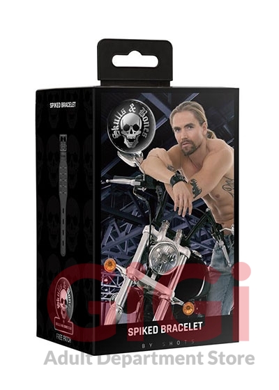 Ouch! Skulls and Bones Bracelet with Spikes Black