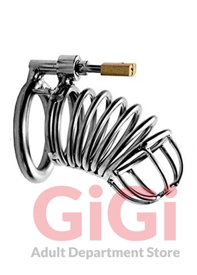 Has your naughty slave been enjoying too much liberty? Keep your captive under lock and key with this intriguing confinement piece! Lock him into submission by choosing one of the three differently sized rings, and placing the cage over the penis shaft. This is where the power exchange happens. With his manhood confined in this fortress of steel, he will be unable to achieve a full erection, limiting his satisfaction and stimulation, while keeping him pleasantly compliant. Viva la domination!