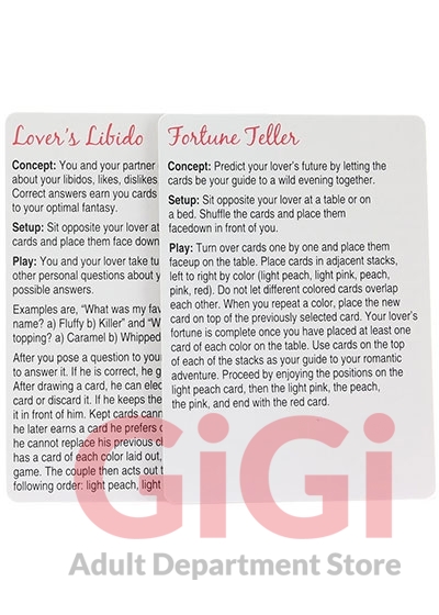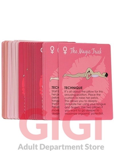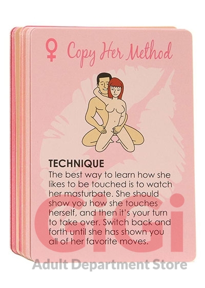 The Oral Sex Card Game an experience in oral adventures from Kheper Games. Have you tried oral sex in 5 positions? How about 10? 20?! Now try 50 different foreplay and oral sex positions! The oral sex card game offers you 50 different creative ideas. Use the cards as positional references or play one of the three Oral Sex games. There are 25 Oral Sex cards for him and 25 for her. Each 5 card fantasy includes at least 2 of each.