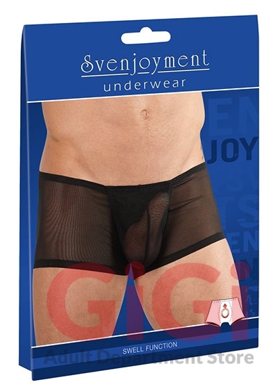 Semi transparent pants with a swell function for an impressive front bulge. The pants are wonderfully stretchy and a perfect fit.