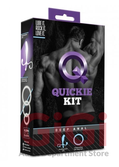 Enjoy maximum stimulation with the Quickie Kit - Deep Anal. It combines an ergonomically designed prostate massager with three cock rings, so you have all your bases covered. Made of body safe, easy-to-clean TPE, the Deep Anal Massager targets your most sensitive spots. Plus the three silicone cock rings come in various sizes for a sure fit and increased endurance. Both the massager and rings glow in the dark for nighttime fun, either solo or with a partner! Use with your favorite water-based lube for optimal pleasure.